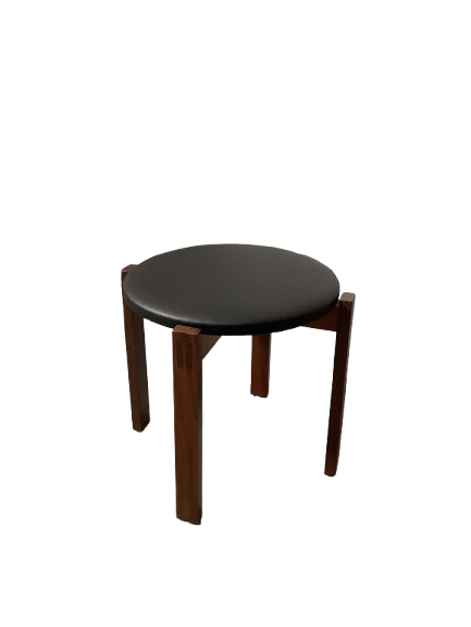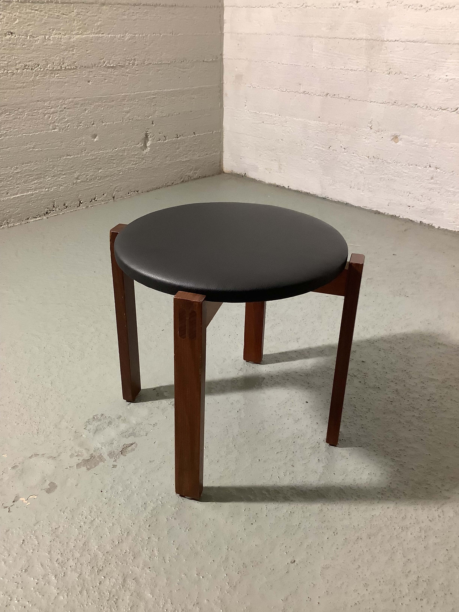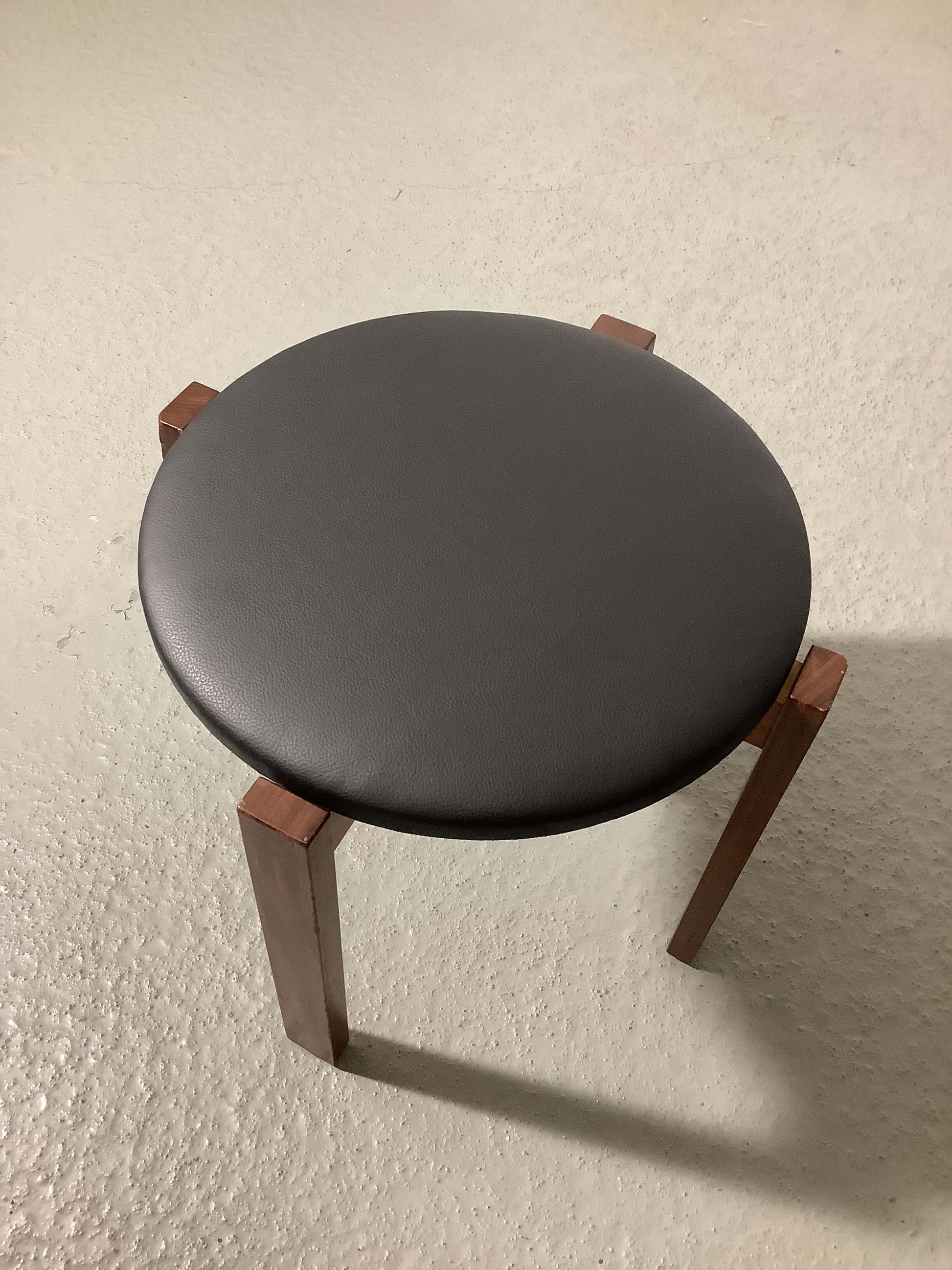 Tyylikäs ja harvinainen. Teak jalat, uudelleen verhoiltu mustalla aidolla nahalla.