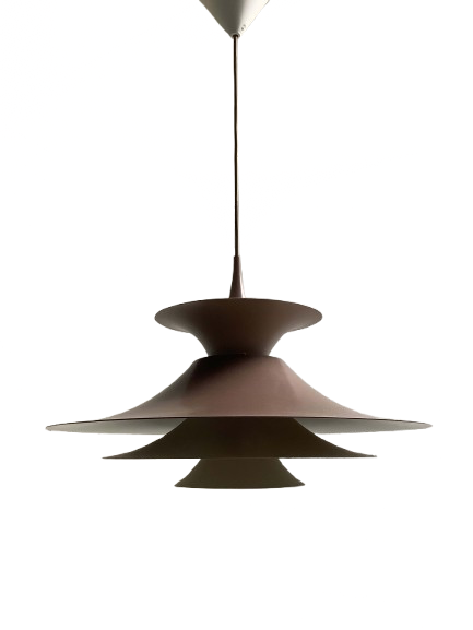 Tanskalainen Erik Balslev Fog & Morup "Radius" kattovalaisin, 60-luku. Kaakaonruskea kaunis väri. Valaisimessa neljä allekkaista varjostinta.