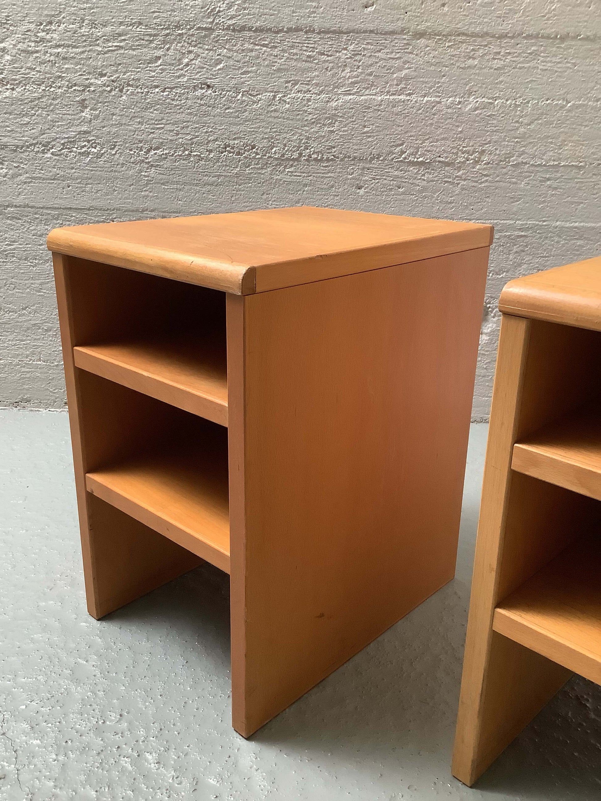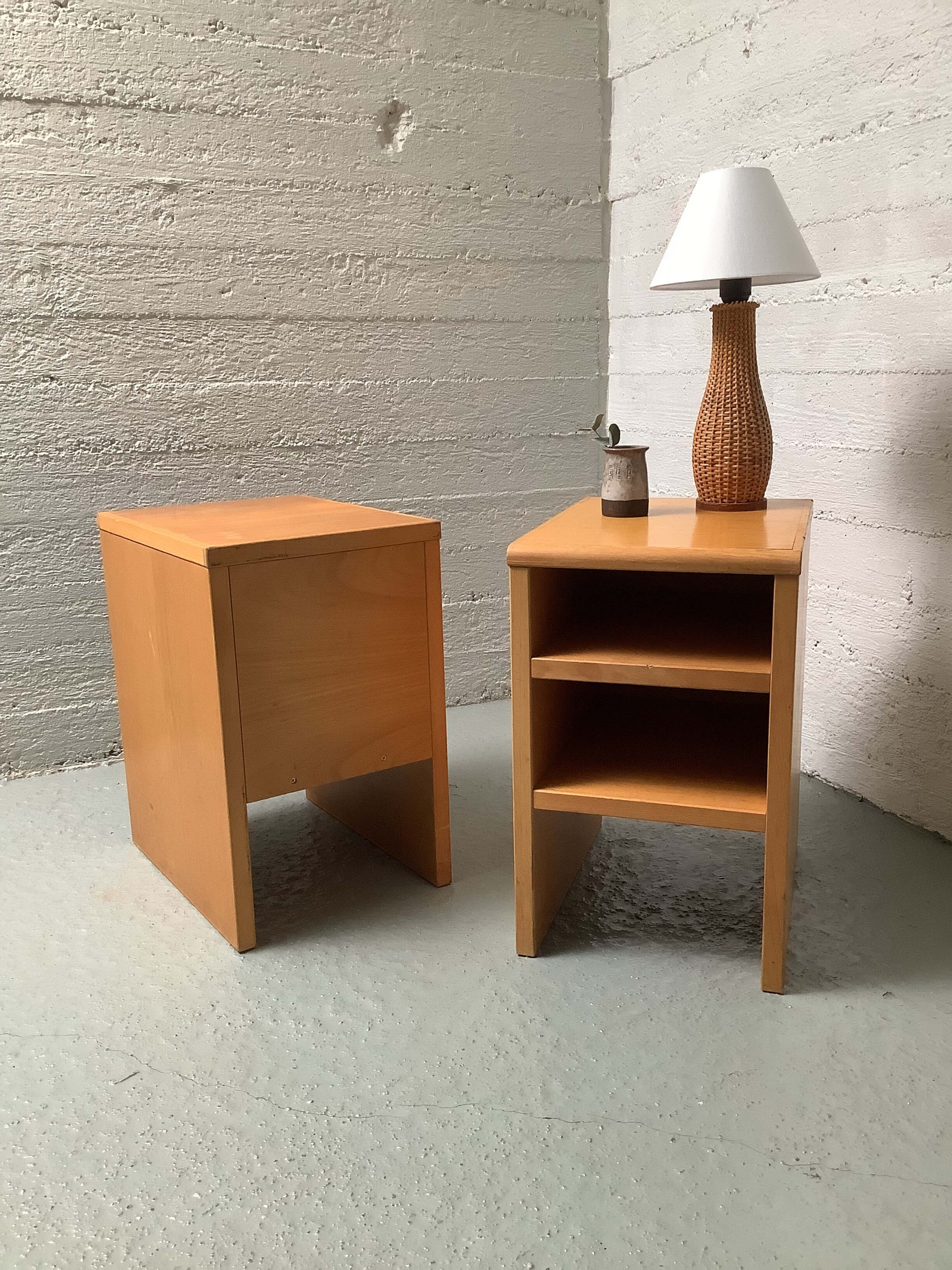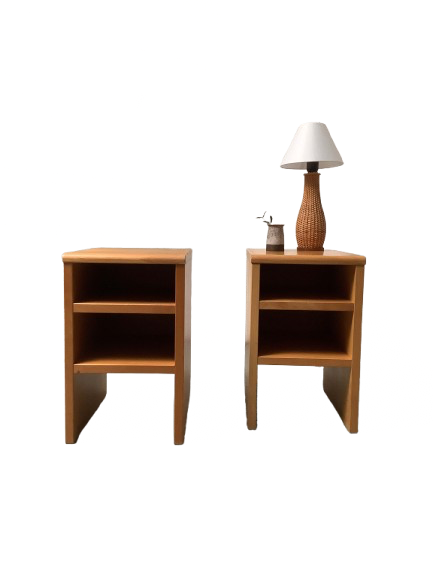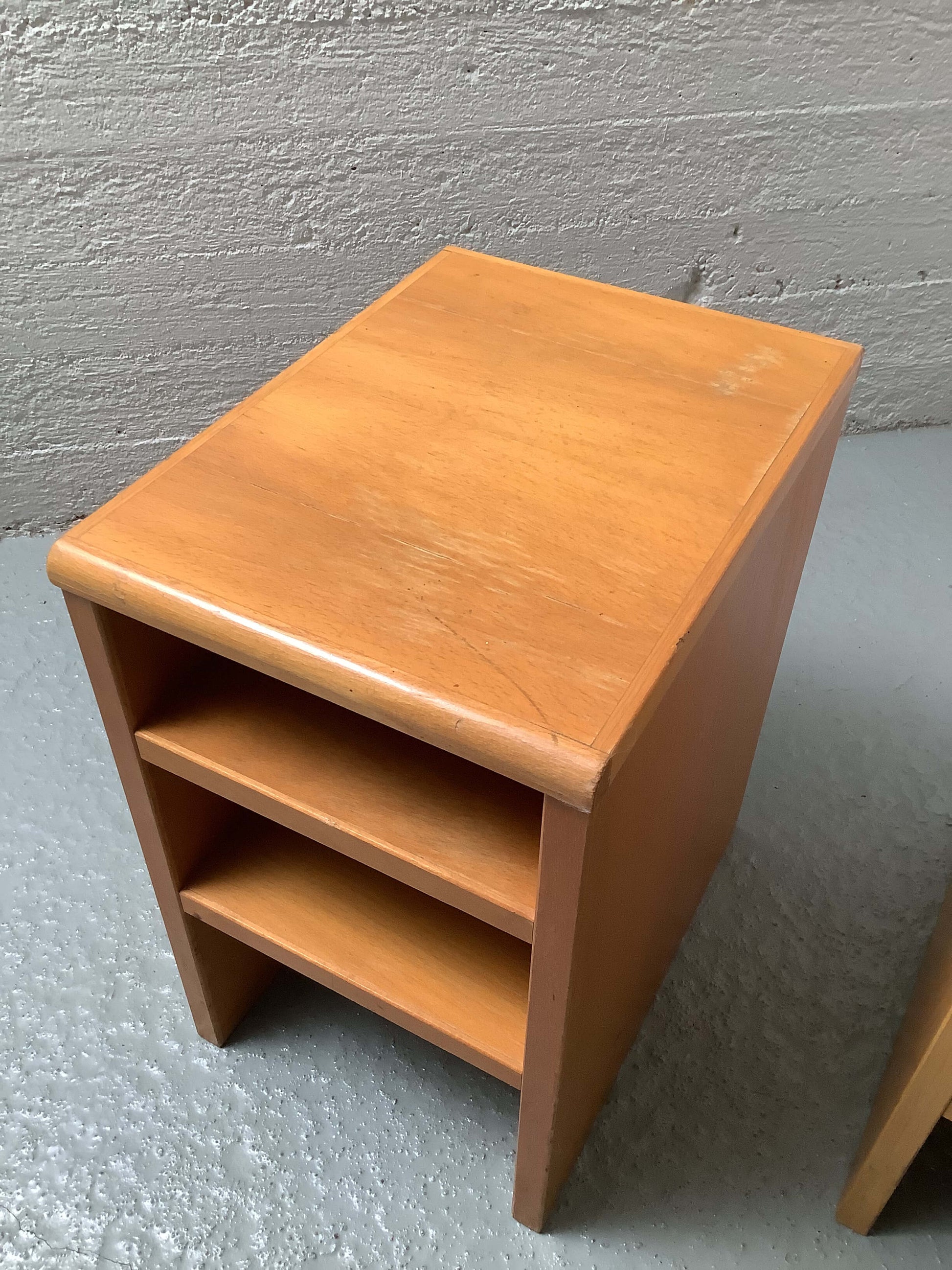 Funkkistyyliset sivupöydät 60/70-luku. Tukevarakenteiset, ajanmukaista kulumaa.