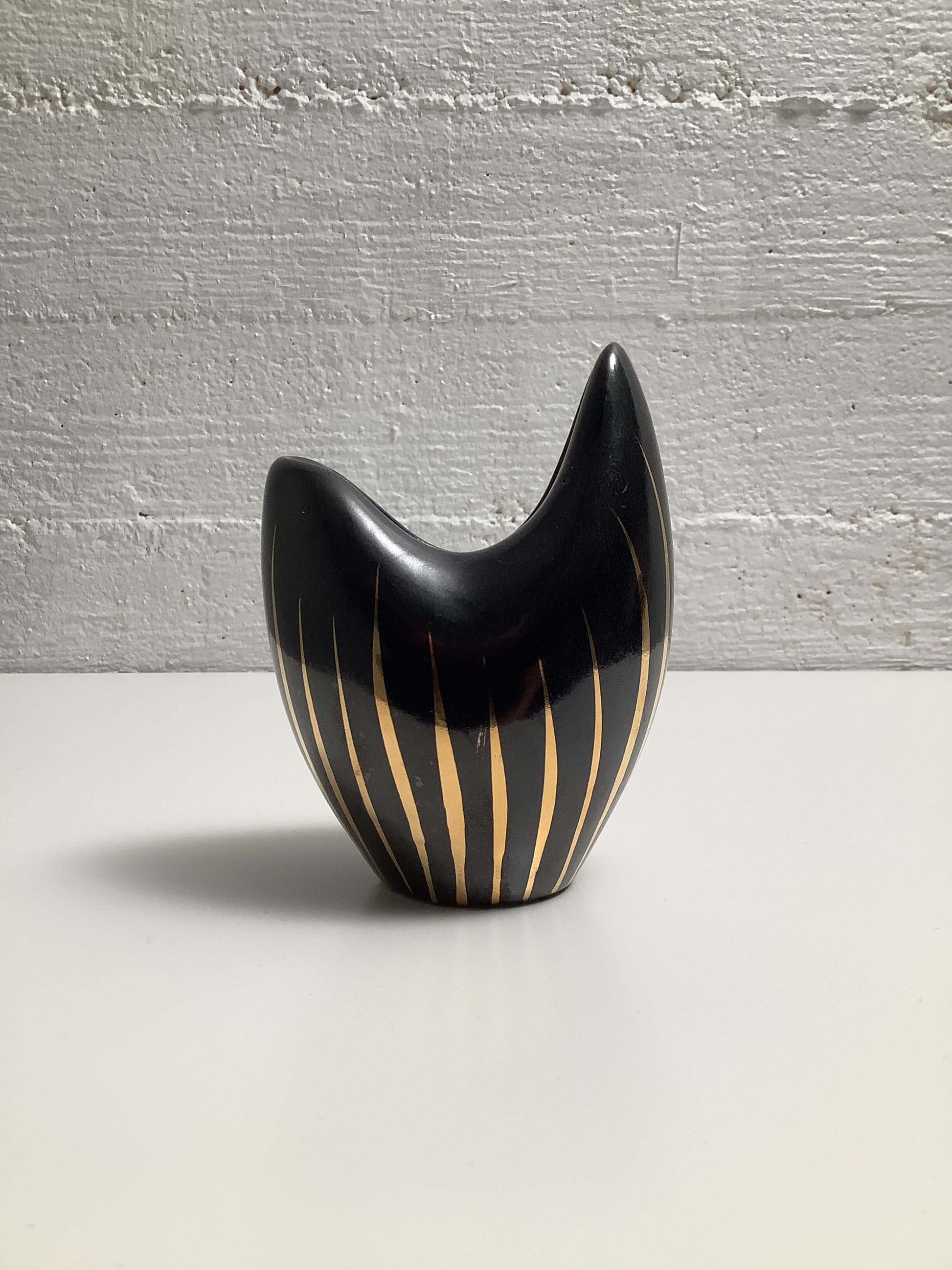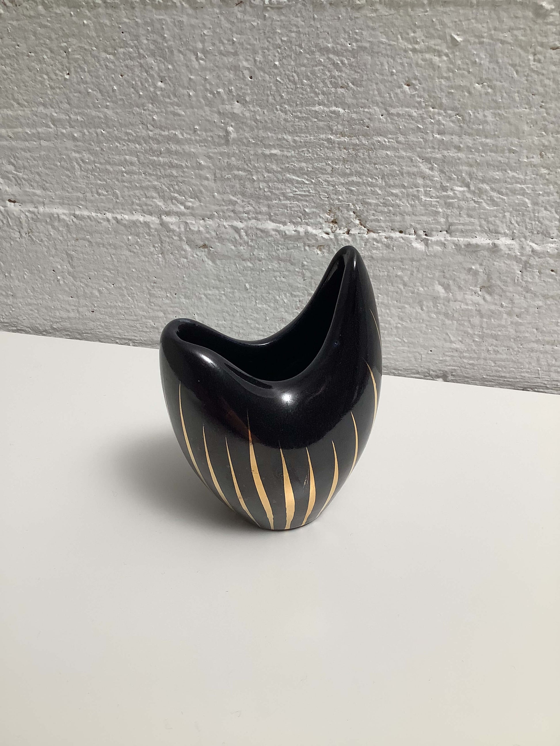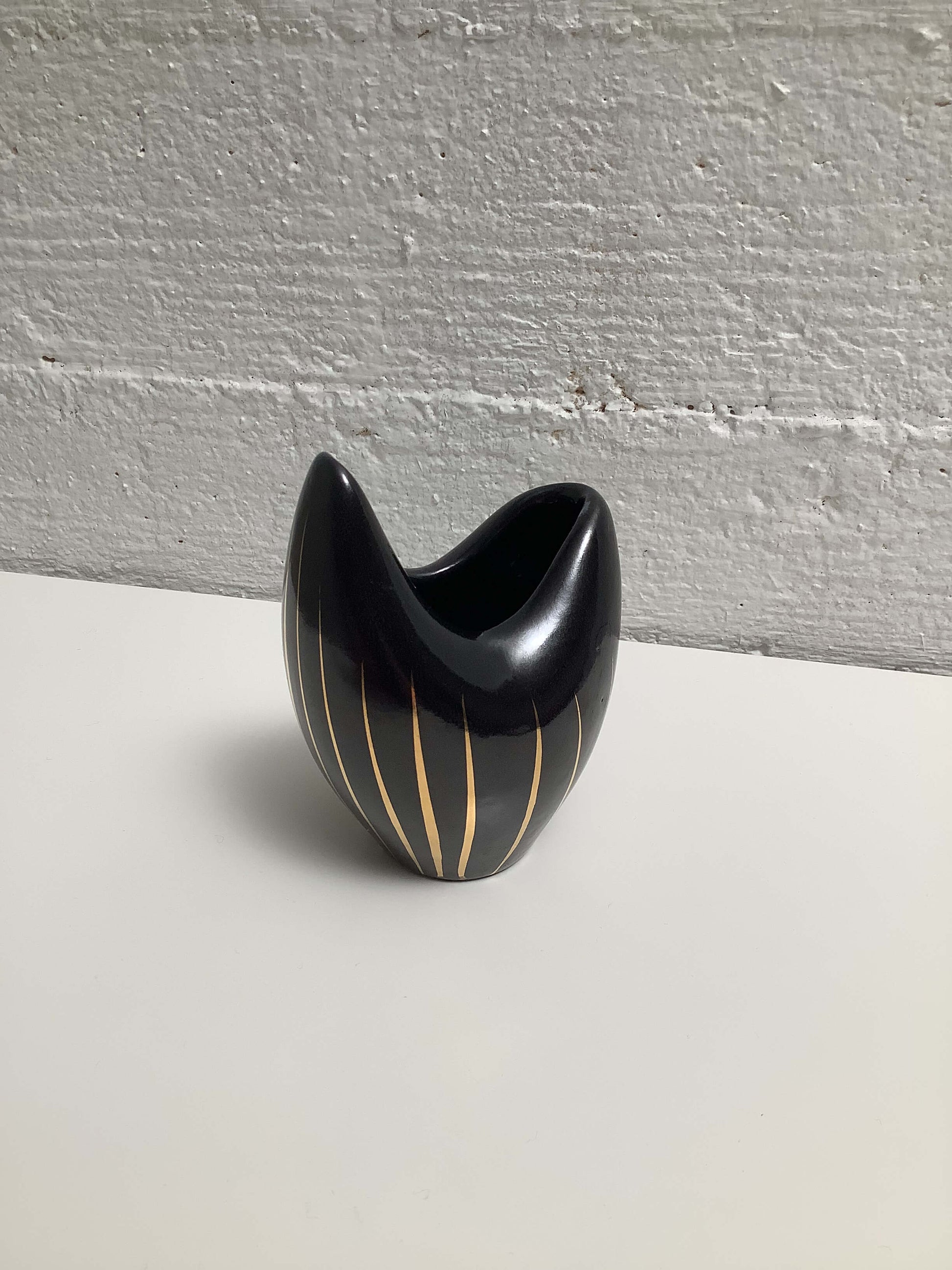 Kaunis musta keramiikka kultaisilla koristeilla.