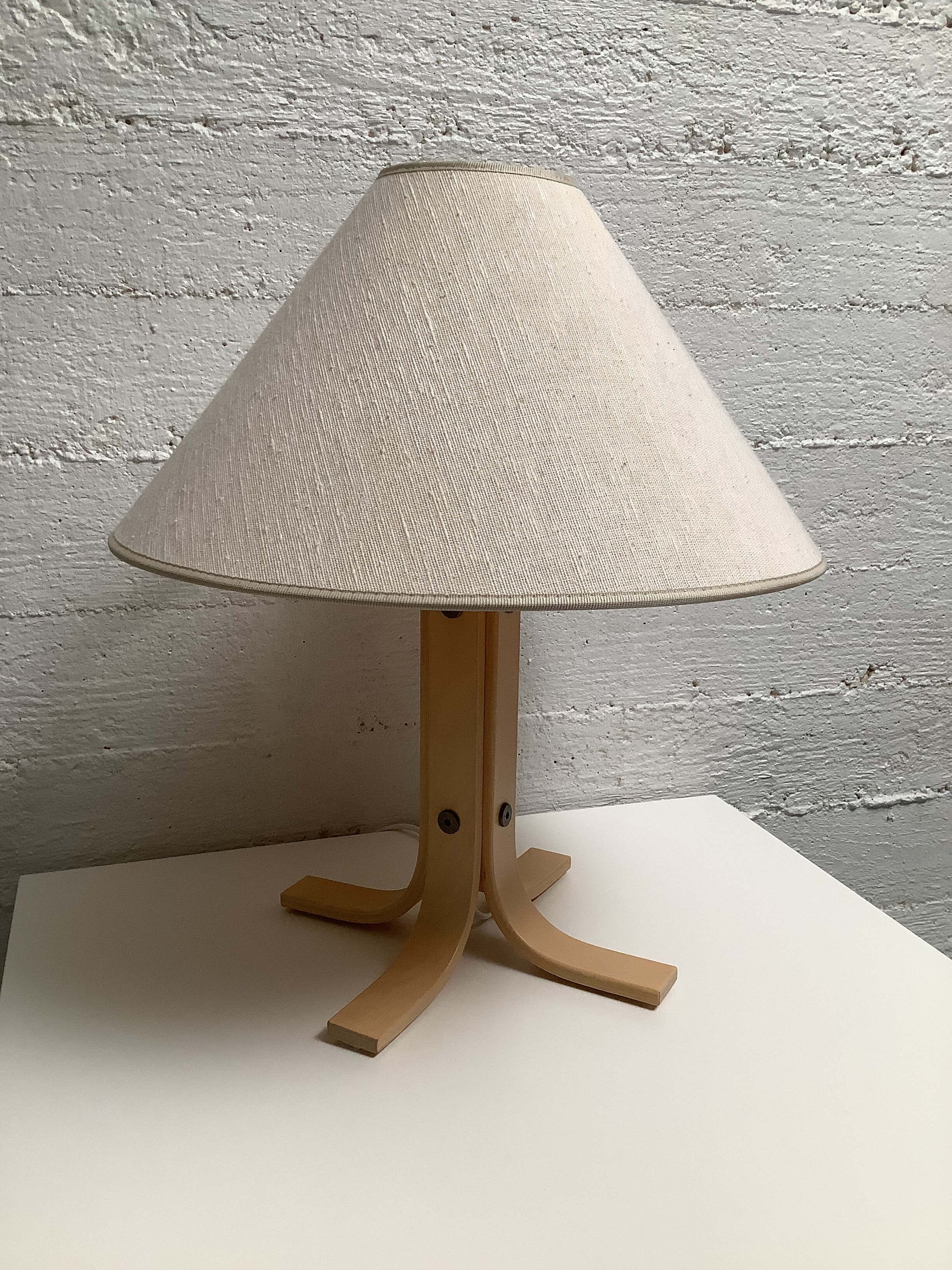 1970–80-luvun KER-LUX pöytävalaisin tuo sisustukseen pehmeää tunnelmaa. Valaisimen muotoilussa näkyy aikakaudelle tyypillinen tasapaino käytännöllisyyden ja estetiikan välillä – yksinkertainen, mutta samalla ilmeikäs kokonaisuus.