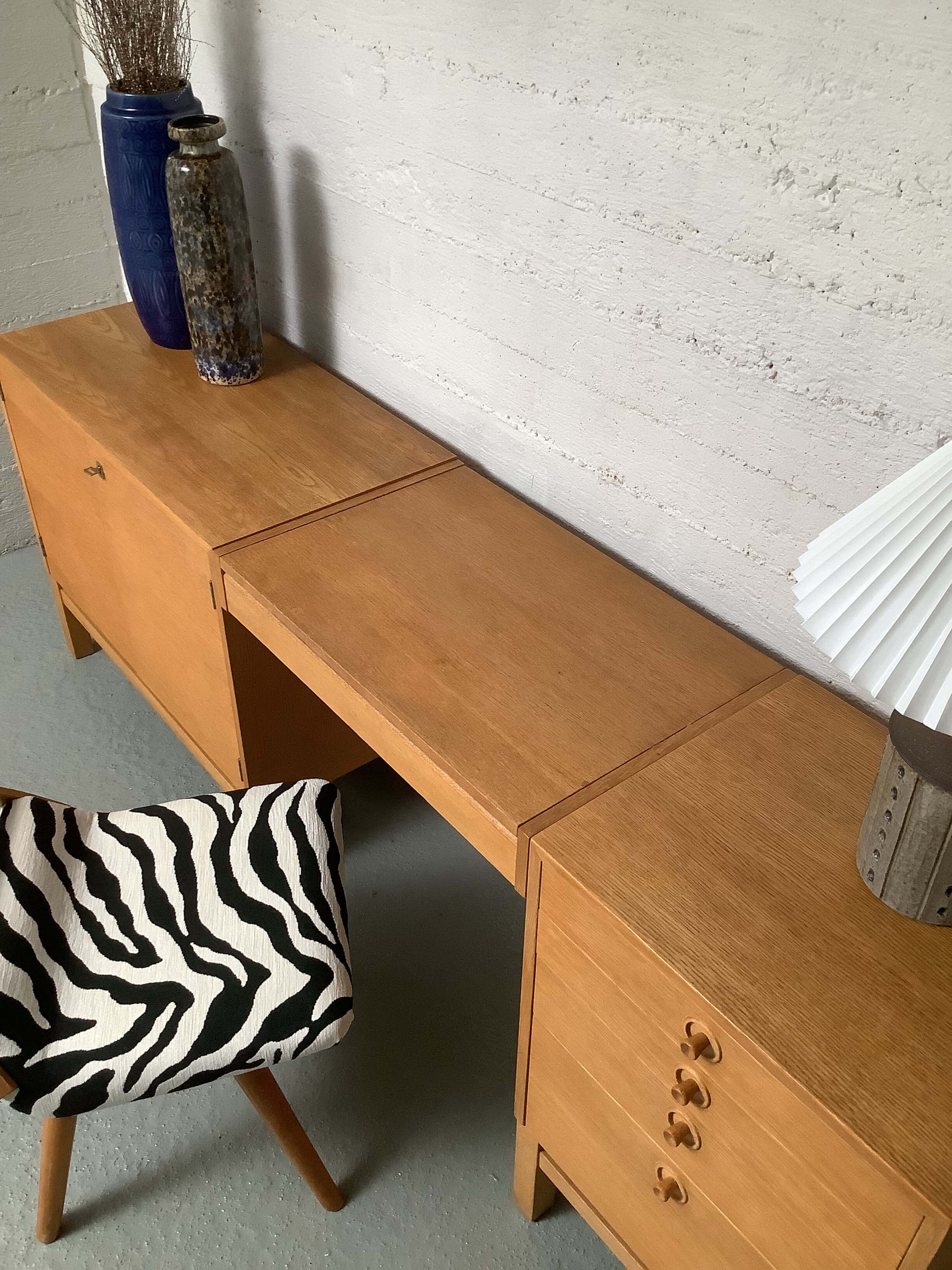 Tamminen lipsto/pöytä/kaappi. 60-luku. Tämä kolmessa osassa, helppo kuljettaa.