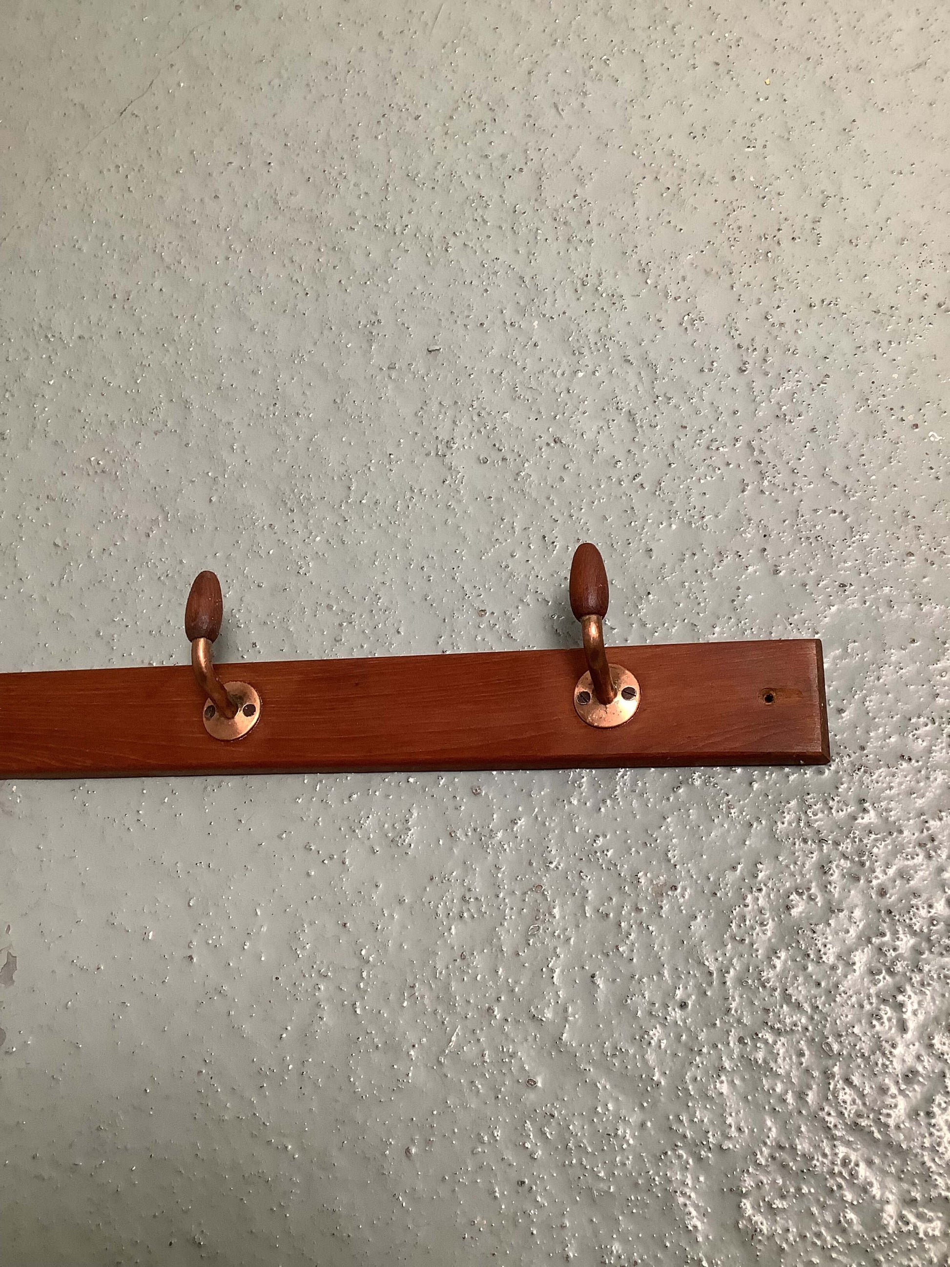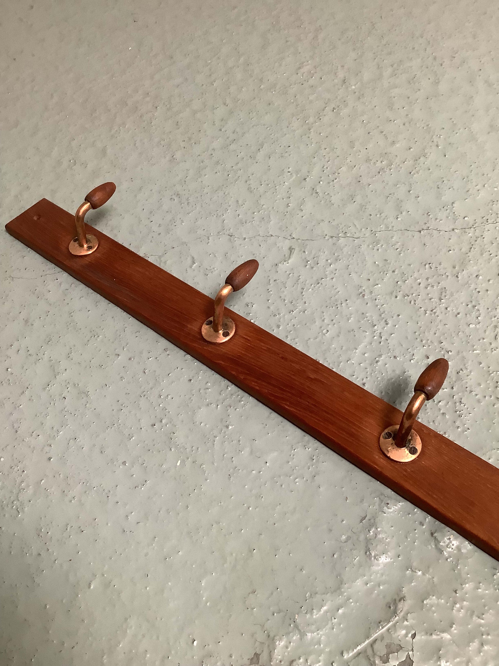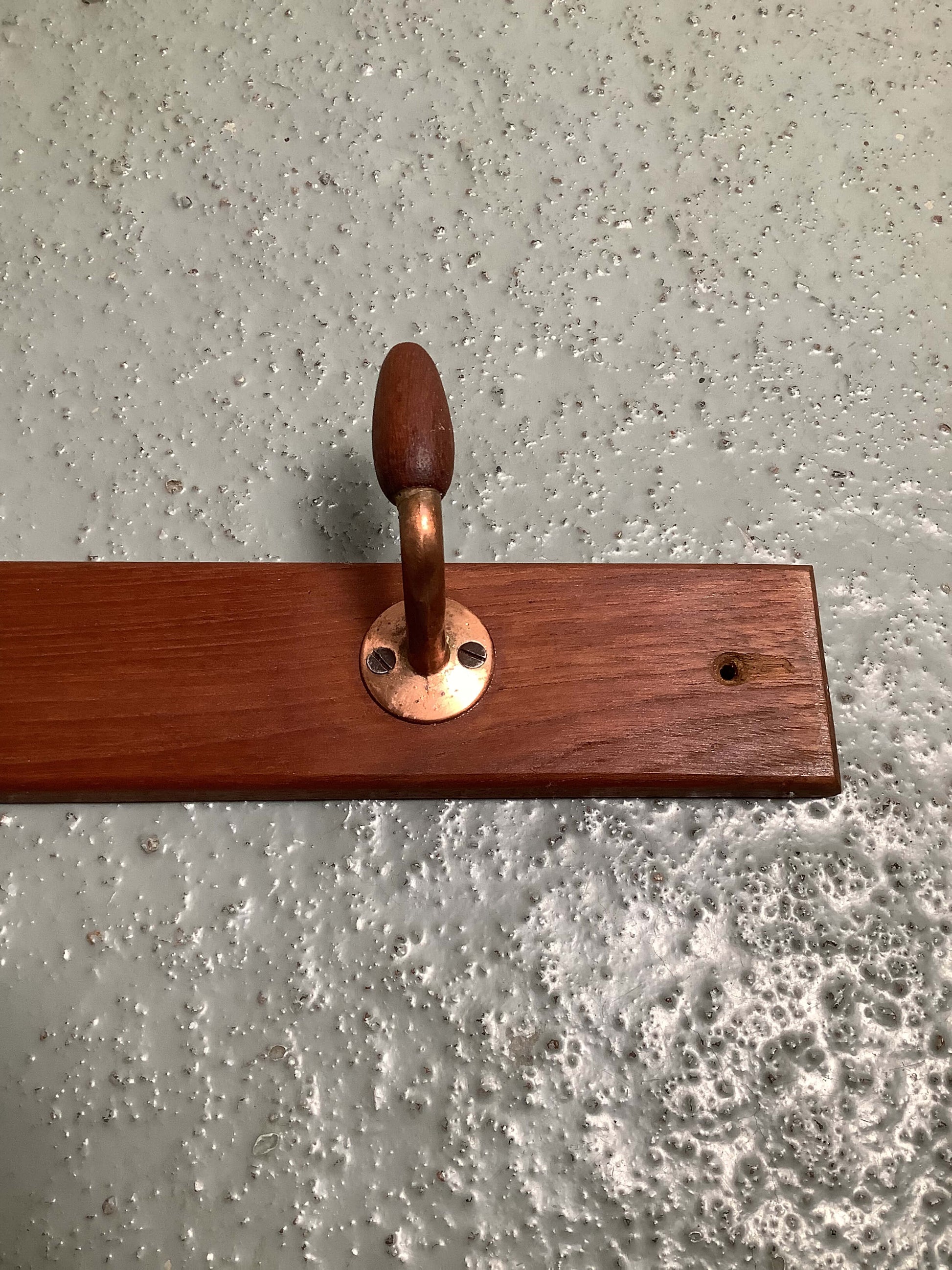 Tanskalainen teaknaulakko. Kauniit nupit ja kupariset yksityiskohdat.