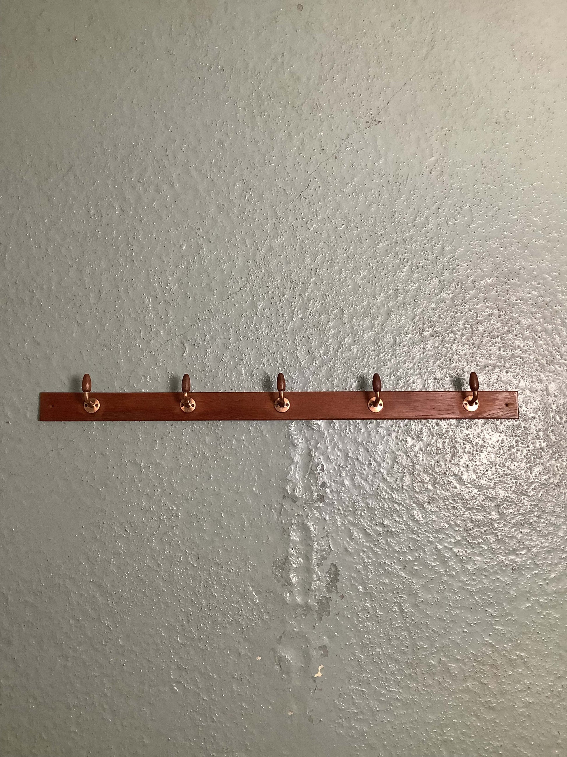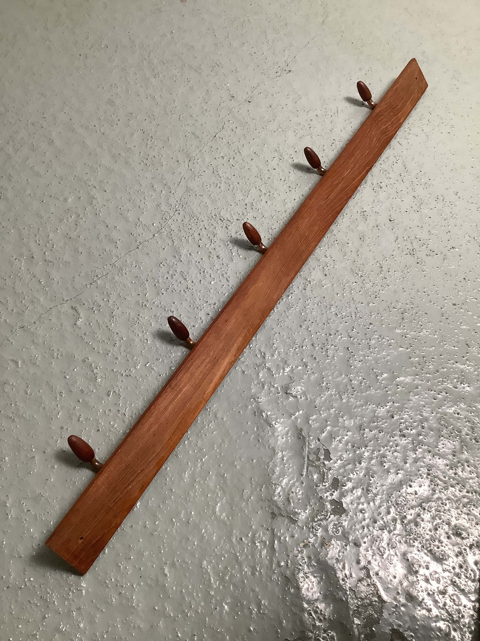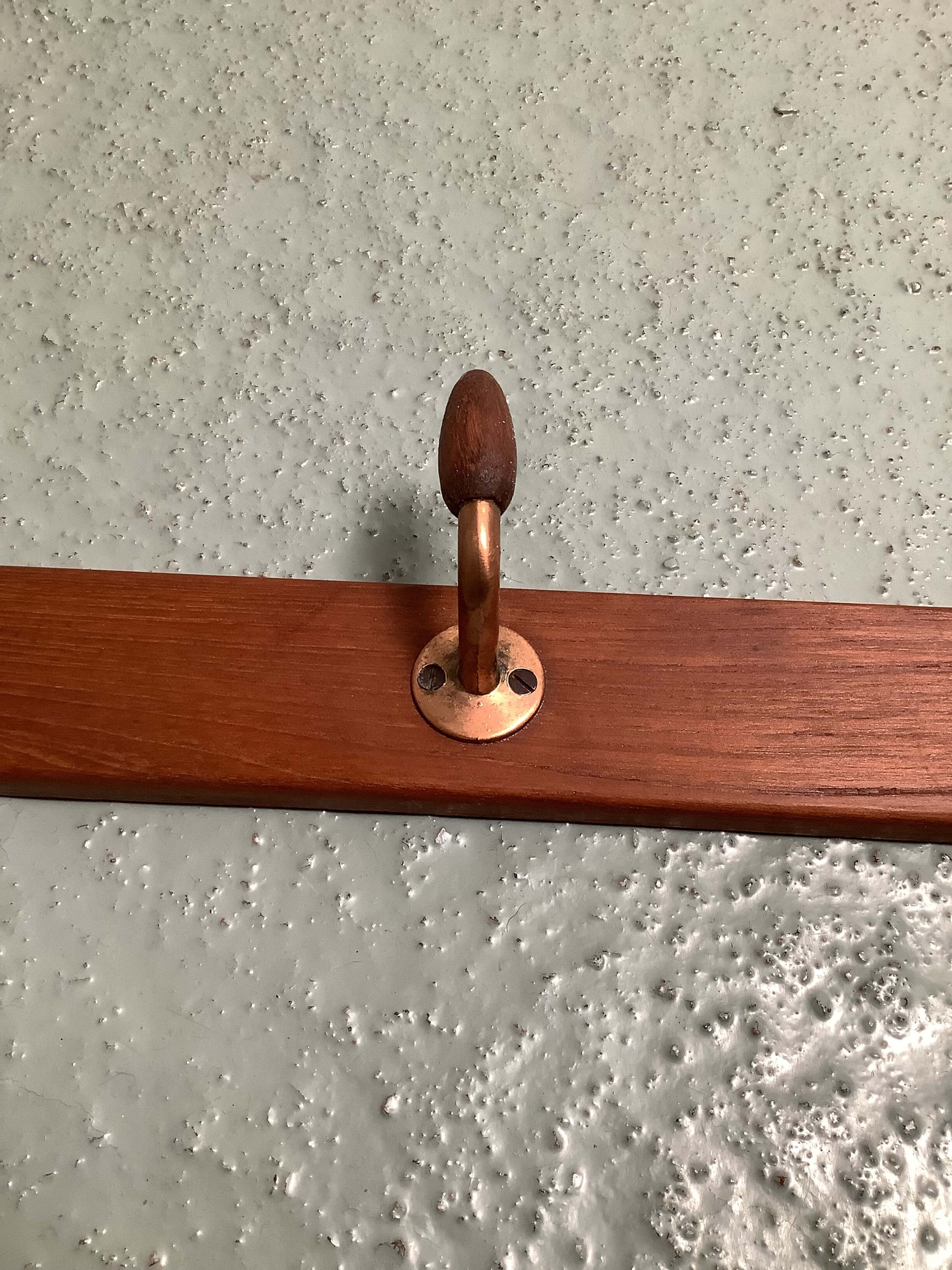Tanskalainen teaknaulakko. Kauniit nupit ja kupariset yksityiskohdat.