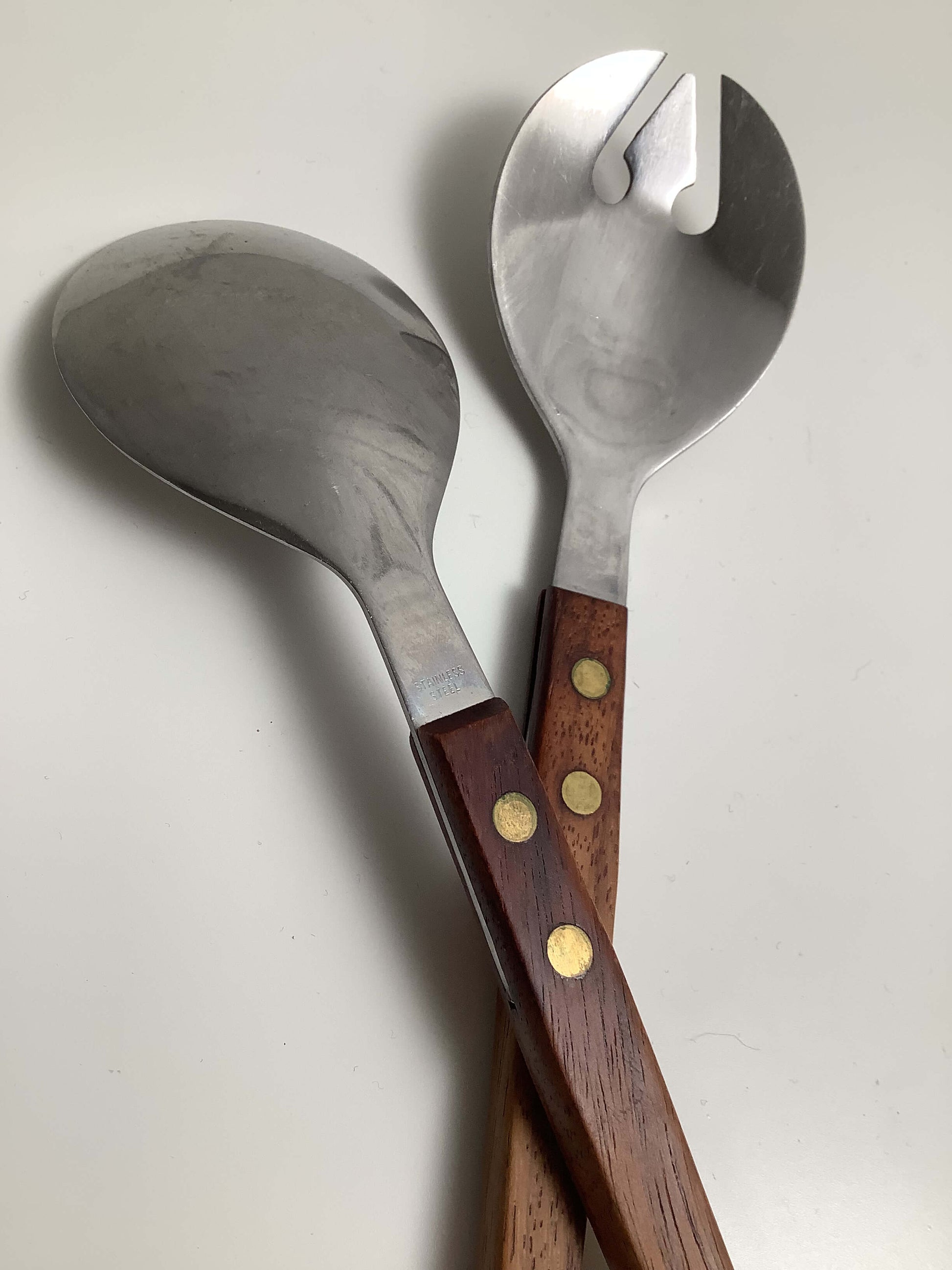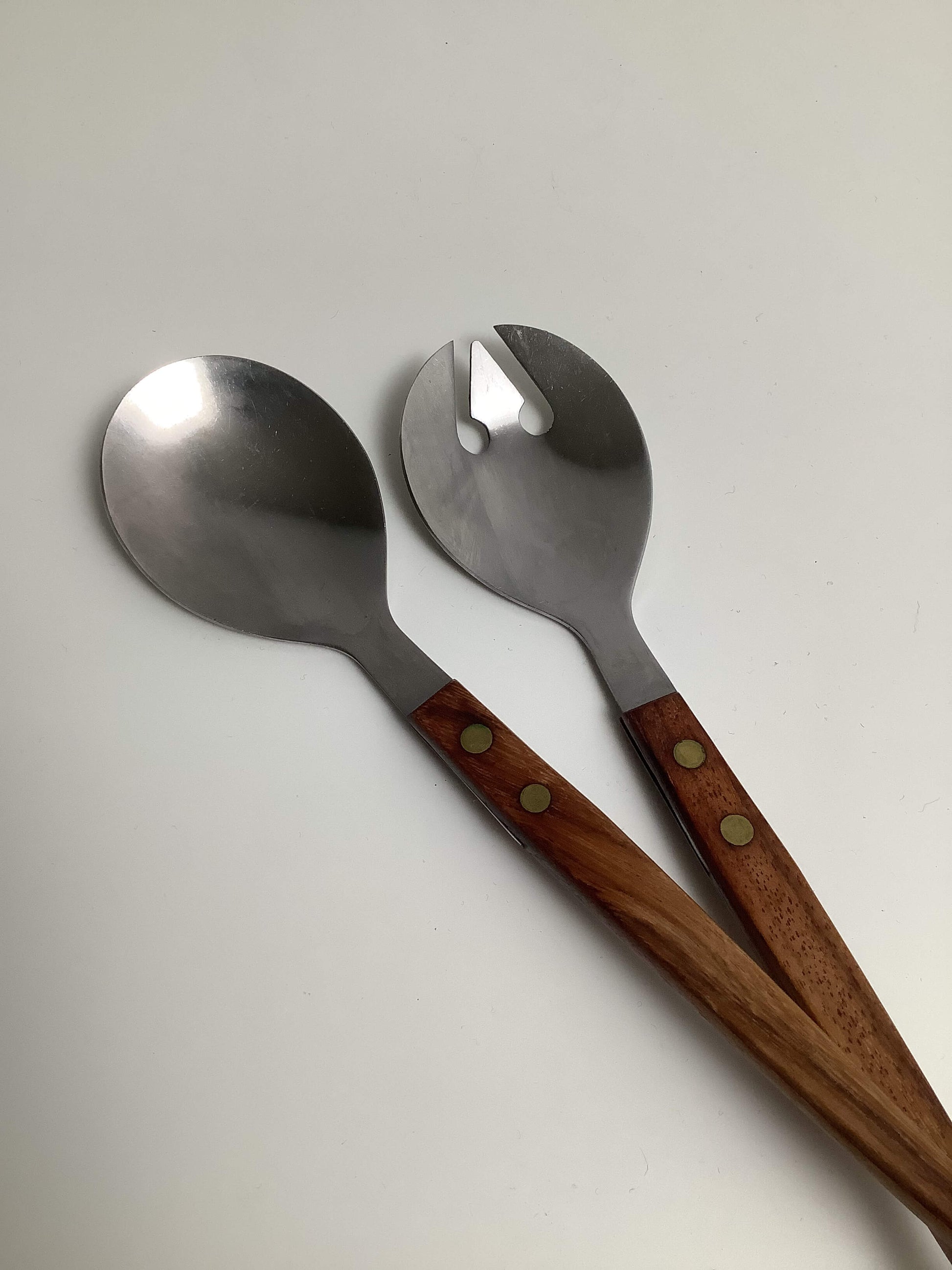 Tanskalaiset teak/ ruostumatonteräs salaattiottimet.