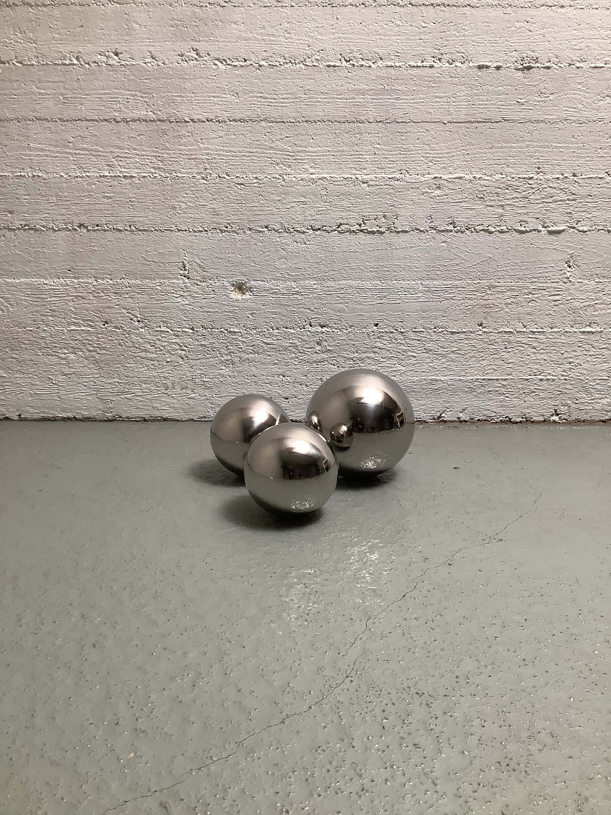 Vintage koristepallot 3kpl. Valmistettu ruostumattomasta teräksestä. Kaunis peilimäinen pinta. 70-luku. Näitä kutsutaan "gazing balls"- nimellä. Kauniit koristekäyttöön.