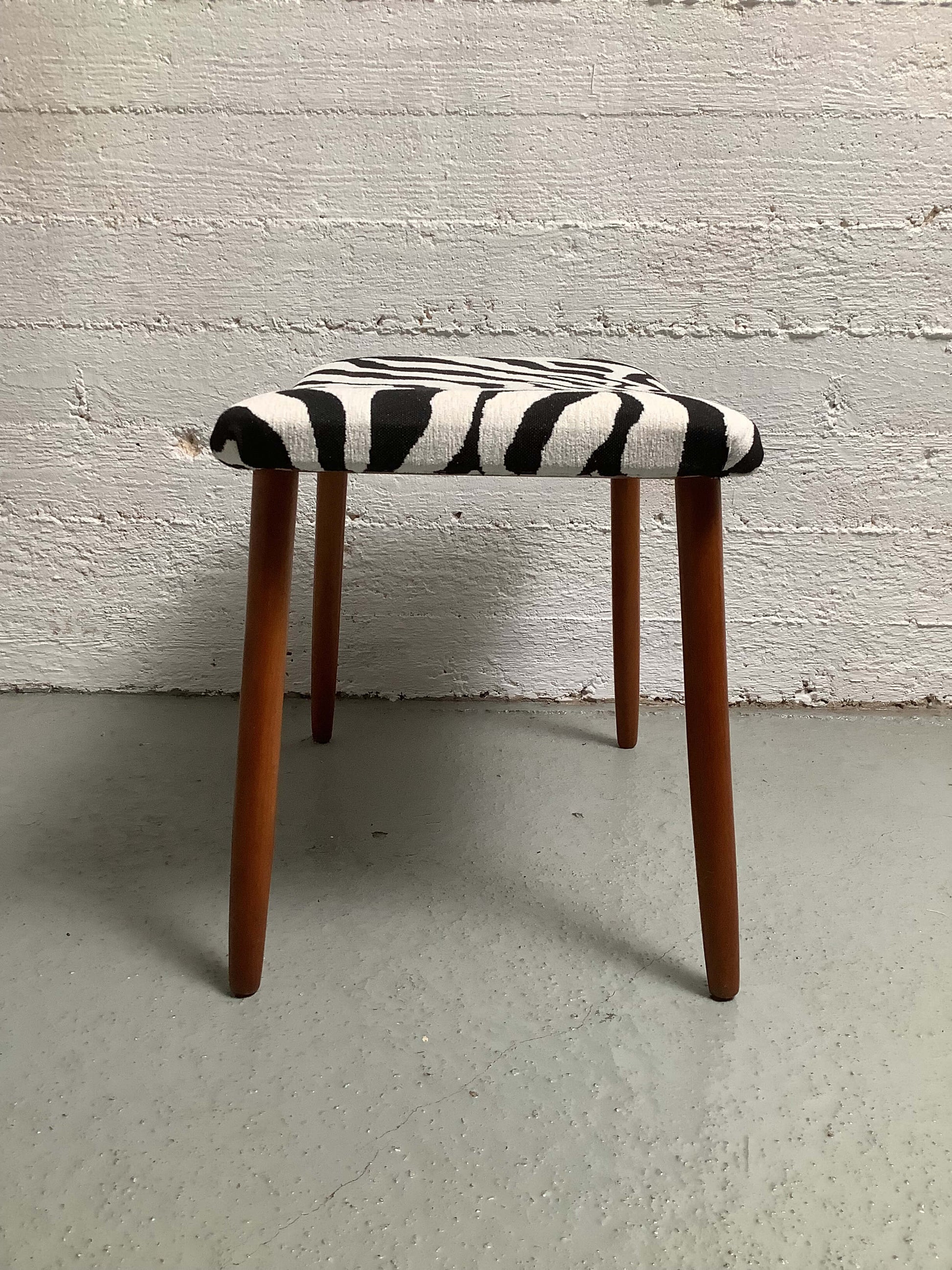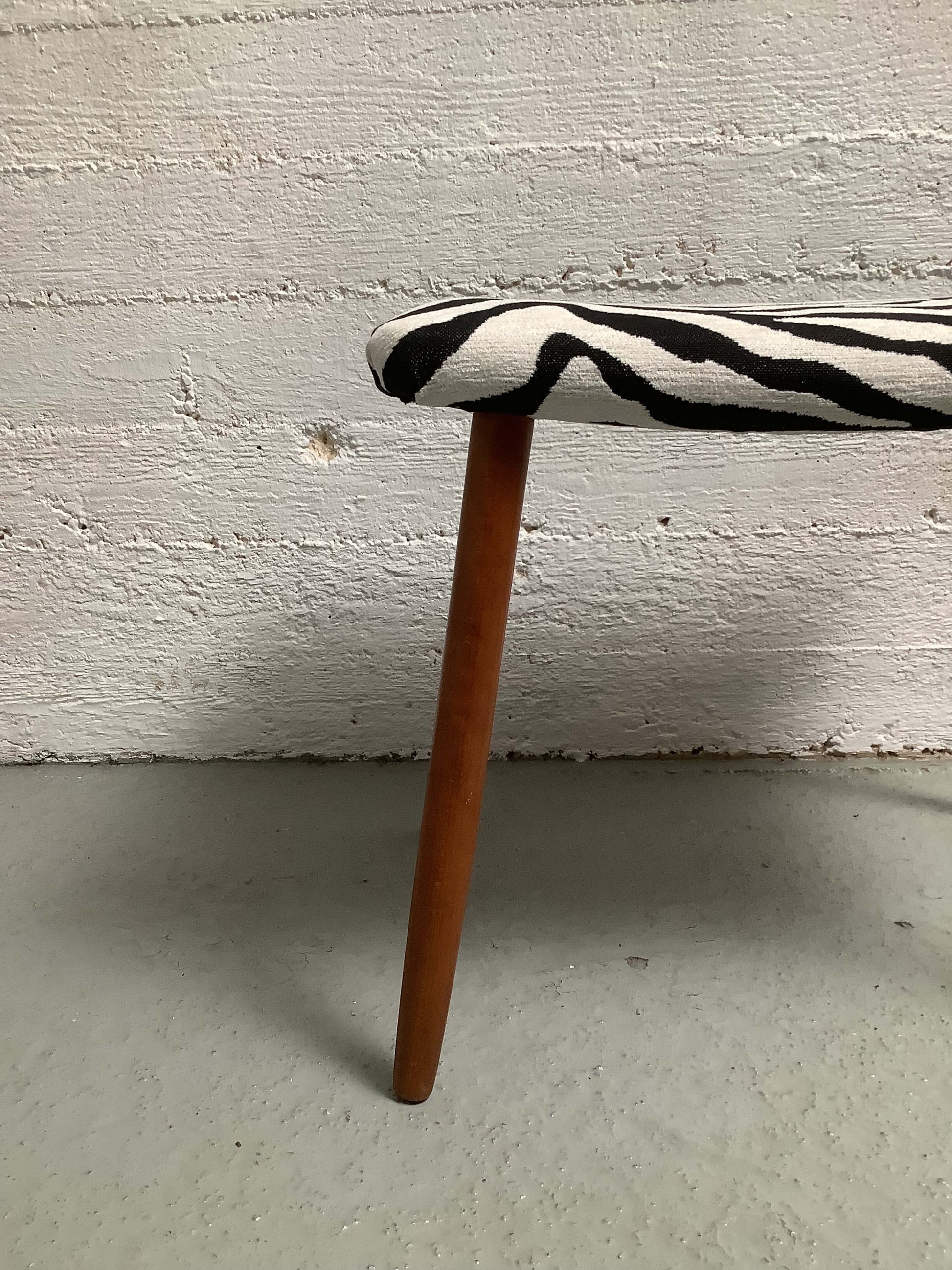 Tanskalainen Zebra-rahi, teak jalat. Uudelleen verhoiltu.